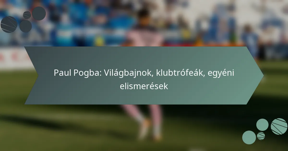 Paul Pogbát a világbajnoki címével elért figyelemre méltó teljesítményei miatt ünneplik, hiszen kulcsszerepet játszott Franciaország 2018-as FIFA Világbajnoki győzelmében. Sikeres klubkarrierje számos trófeát tartalmaz a Manchester United és a Juventus csapataival, hangsúlyozva a csapatokra gyakorolt jelentős hatását. Ezen kívül Pogba különféle egyéni elismeréseket is kapott, megerősítve tehetségét és megszilárdítva örökségét a futball világában.